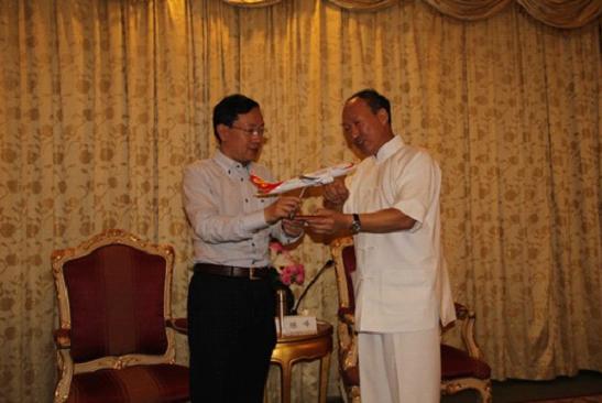 陈峰董事长向童海洋董事长赠送海航集团引进的世界级品牌飞机模型